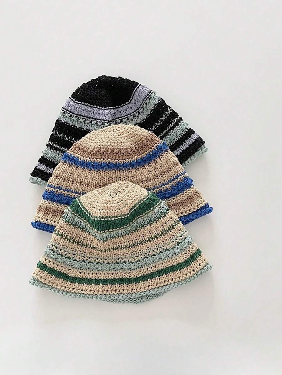 1 件装复古双色条纹草编渔夫帽,百搭女士紧凑型渔夫帽