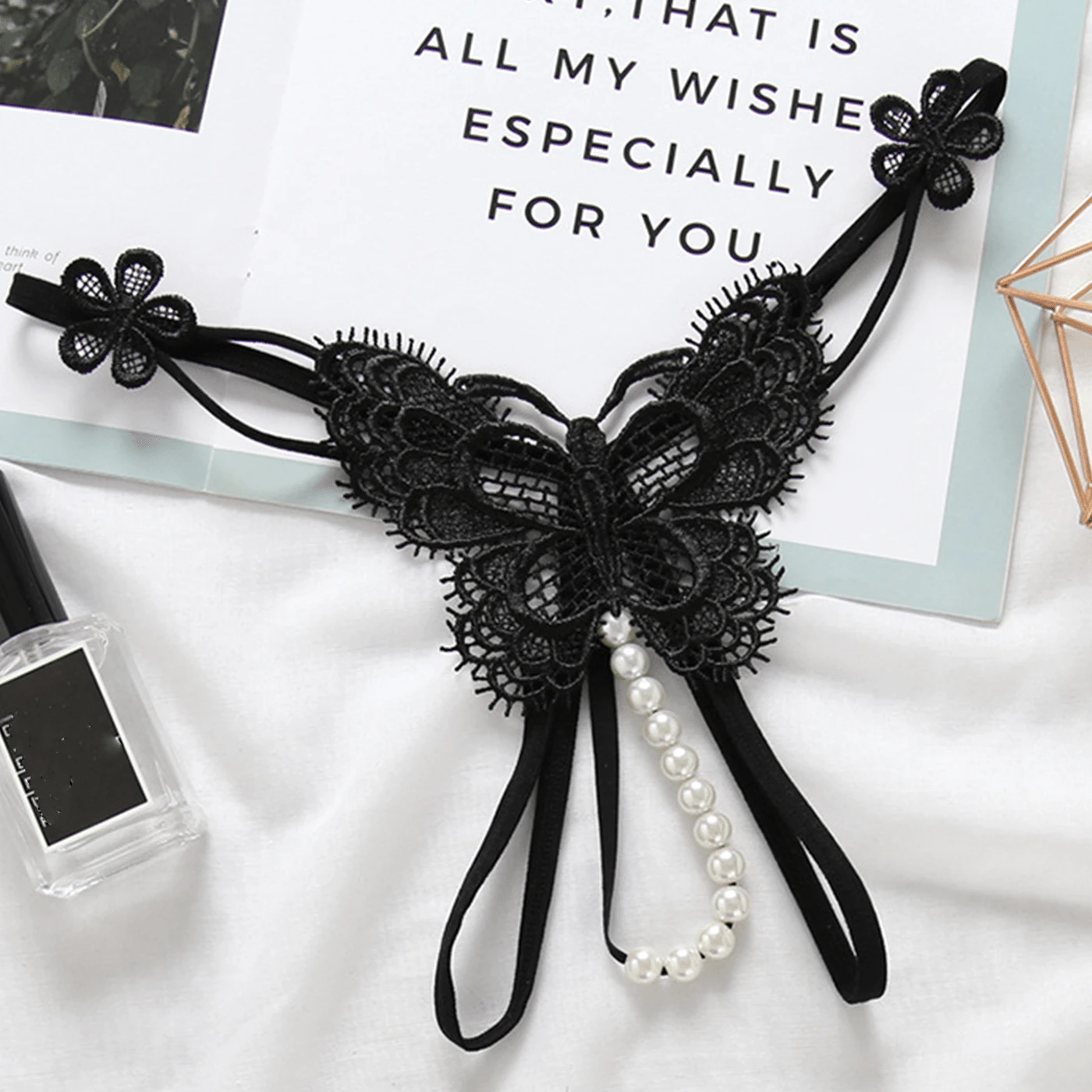 1 件性感蕾絲刺繡開襠丁字褲帶珍珠按摩珠和 T 背款式女式