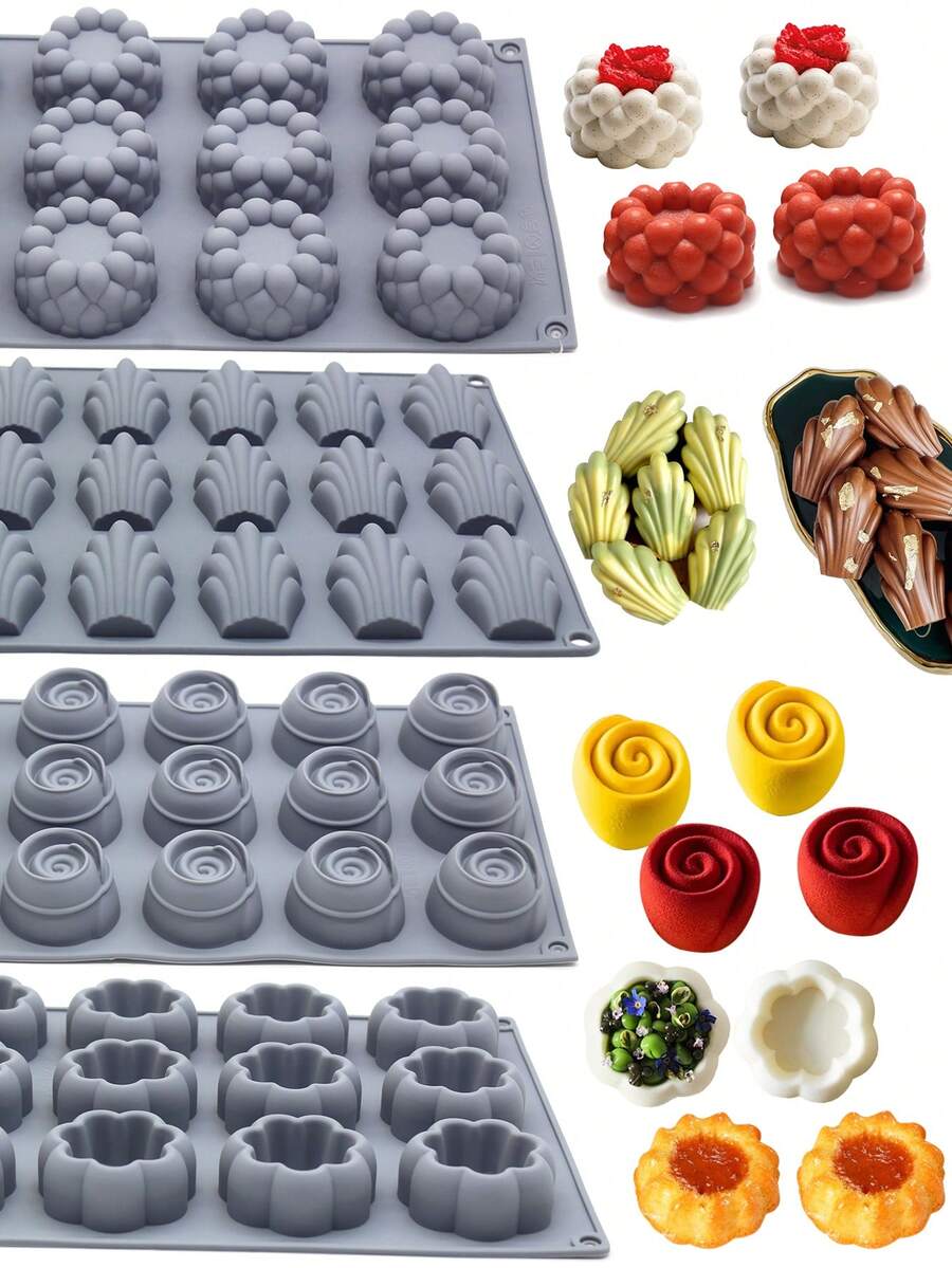 1 件硅胶花卉甜点烘焙模具,玫瑰、贝壳、月亮形迷你蛋糕、巧克力、布丁、慕斯模具、DIY 手工皂、蜡烛、树脂铸造模具