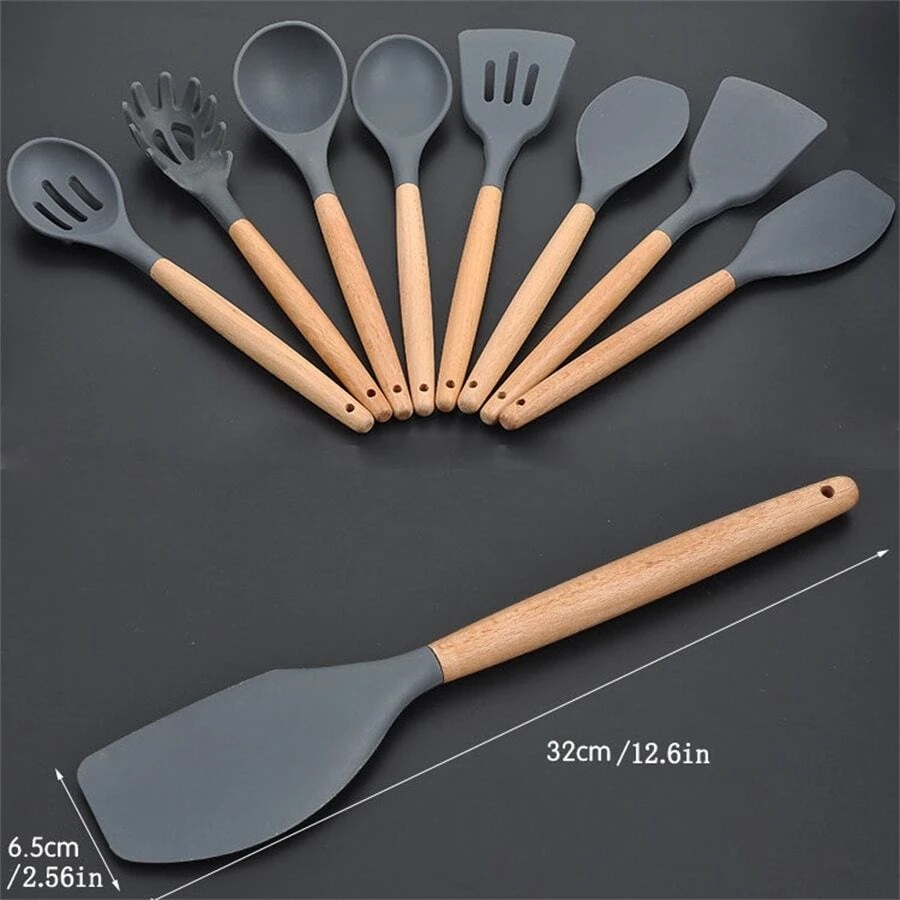 • 1入組矽膠和木柄廚房用具套裝包括刮刀,鍋鏟,湯勺和撇渣器 - 刮鏟 - 查看 11