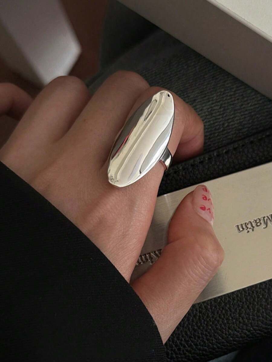 1 件简约椭圆形铜/银开口戒指,适合女性日常佩戴、派对/礼物