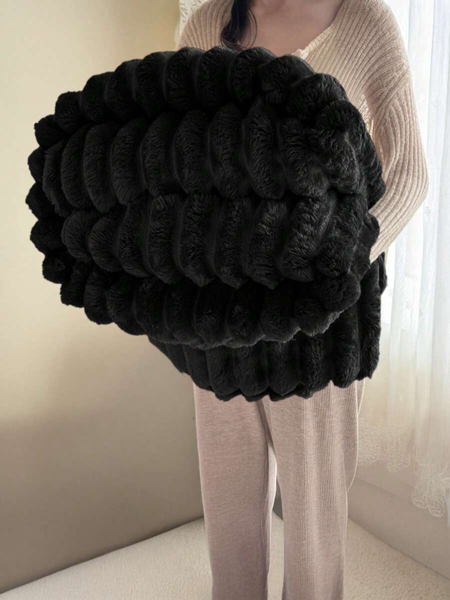 1条柔软、保暖、透气、轻盈舒适的黑色毯子,简约设计,适用于沙发、卧室、客厅,旅行必备,可作午睡毯,多种尺寸可选,可机洗,冬季家居装饰