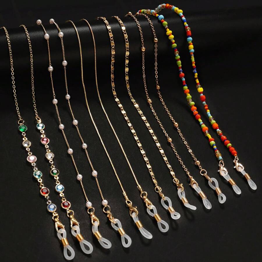 1 件装女士太阳镜遮蔽链亚克力珍珠水晶眼镜链挂绳玻璃新时尚珠宝批发