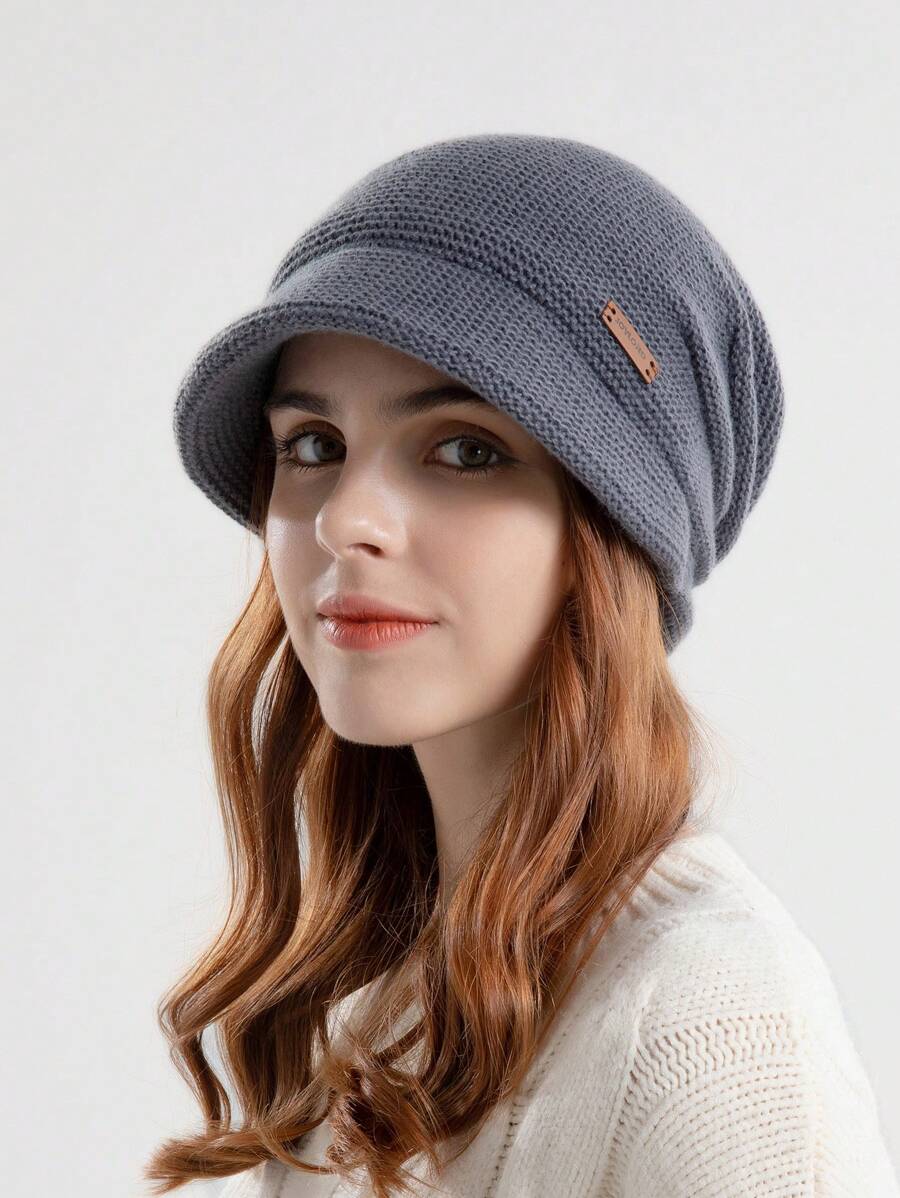 1入組冬天長毛絨帽子適合女士,厚戶外帽帶寬邊緣,小耳朵保護設計,別緻新款媽媽帽