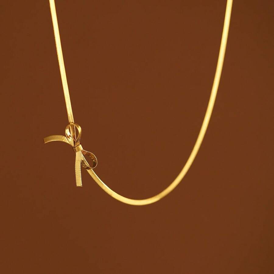 • 1 件女士时尚简约 18K 镀金防水不锈钢链蝴蝶结吊坠项链,日常佩戴 - 金色 - 查看 4