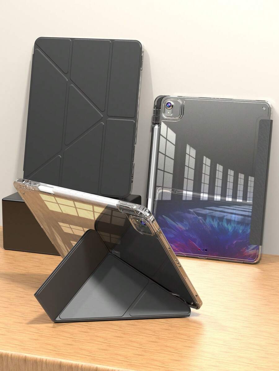 1个Y型折叠亚克力透明保护壳,兼容iPad 5/6/7/8/9/10代/11(A16 2025)/Air4 10.9英寸/Air5 10.9英寸/Air6/Air7/Air11(M2/M3)/Air13/Pro 11英寸/Pro 12.9英寸/iPad Mini 6/7代,智能支架/自动唤醒,黑色