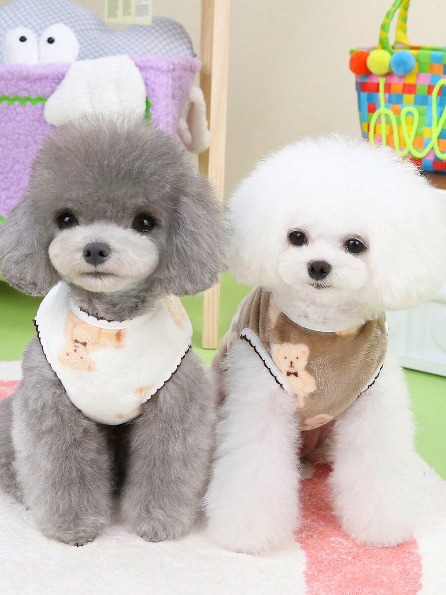 1入裝寵物絨毛背心,使用聚酯纖維面料製成,厚實保暖,可愛的熊花紋,法蘭絨內裡