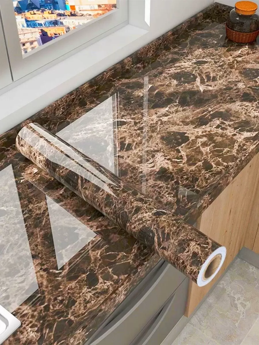 1卷大理石印花防水厨房贴纸,厨房自粘防油墙贴,贴纸,墙贴花,家居装饰乙烯基贴花,春季装饰品让您的家焕然一新,节日装饰贴纸礼物生日毕业