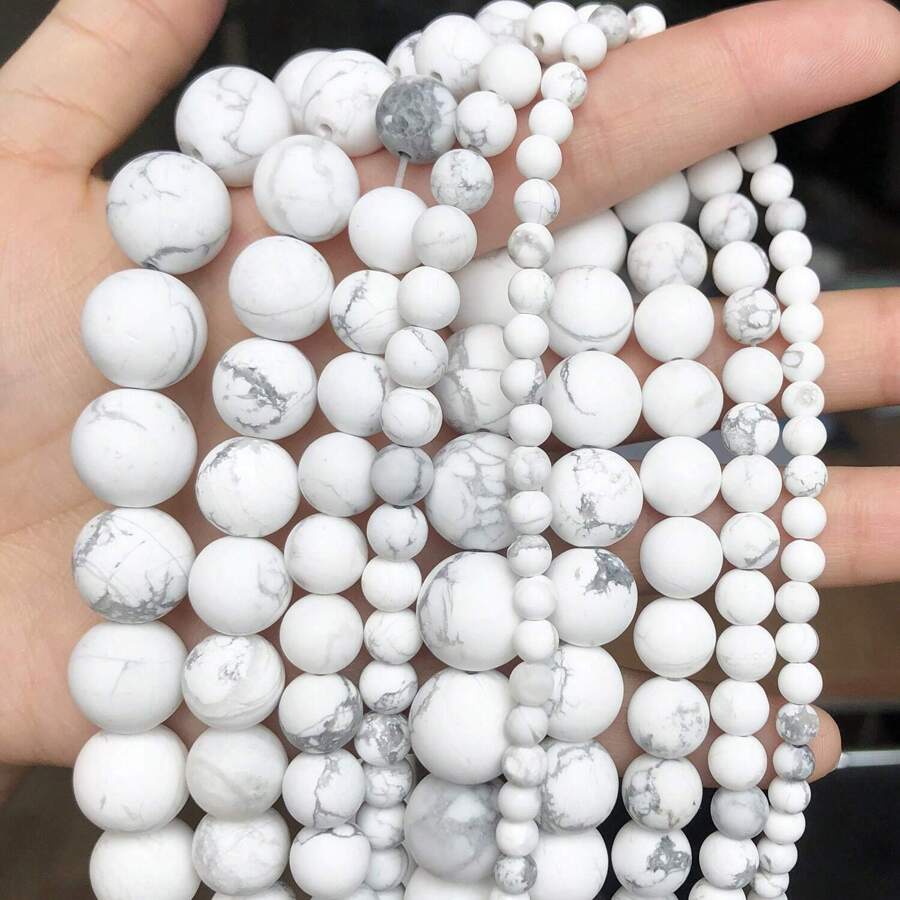 1條天然石材白色豆腐石散珠,適用於女性珠寶製作diy手鍊項鍊配件