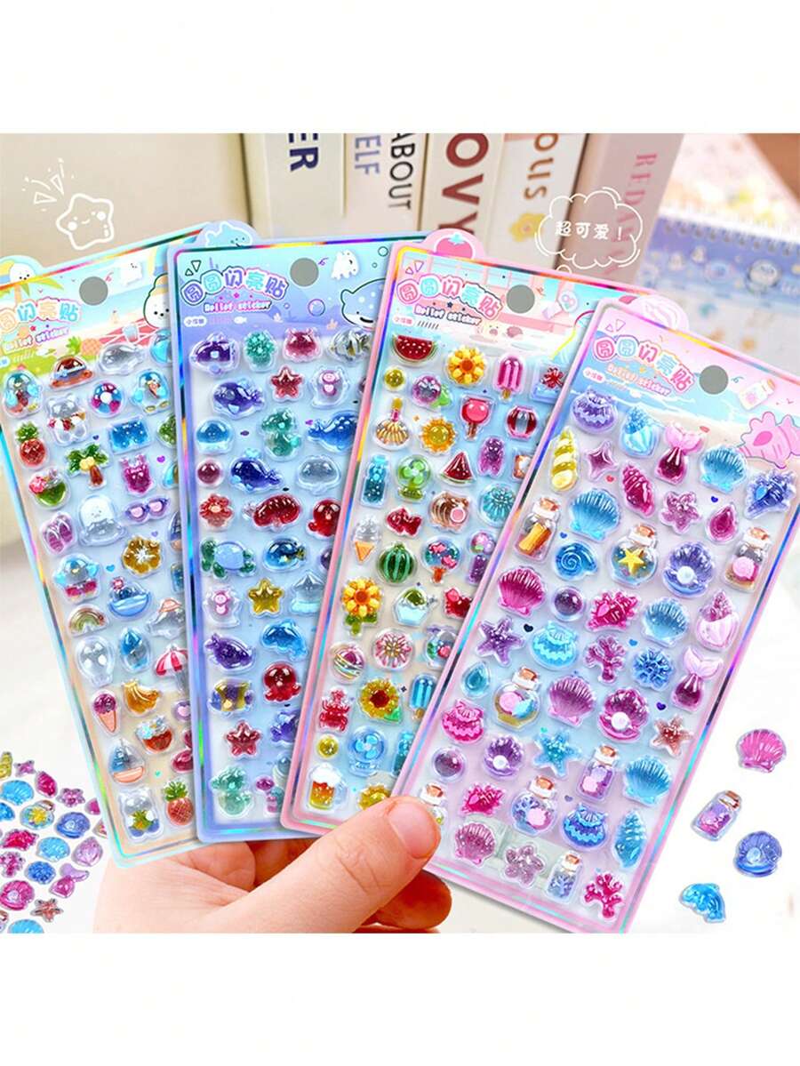 2张/1张可重复使用的3D贴纸 - 可爱水果冰淇淋、实验室贴纸、动物和宠物(猫、狗)| 自粘分层贴纸,不对称形状,哑光表面,适用于剪贴簿、日记、计划本、DIY手工 | 柔和色彩和彩色卡通3D浮雕可爱趣味贴纸,水晶钻石浮雕贴纸,定制创意计划本贴纸