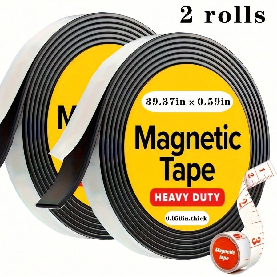 2 卷 39.4 英寸超强磁带 - 易于切割并粘贴在冰箱、白板等上,带有高粘性橡胶条,是办公室、教学、家居装饰配件的优质选择 | 耐用橡胶磁性贴纸,磁带