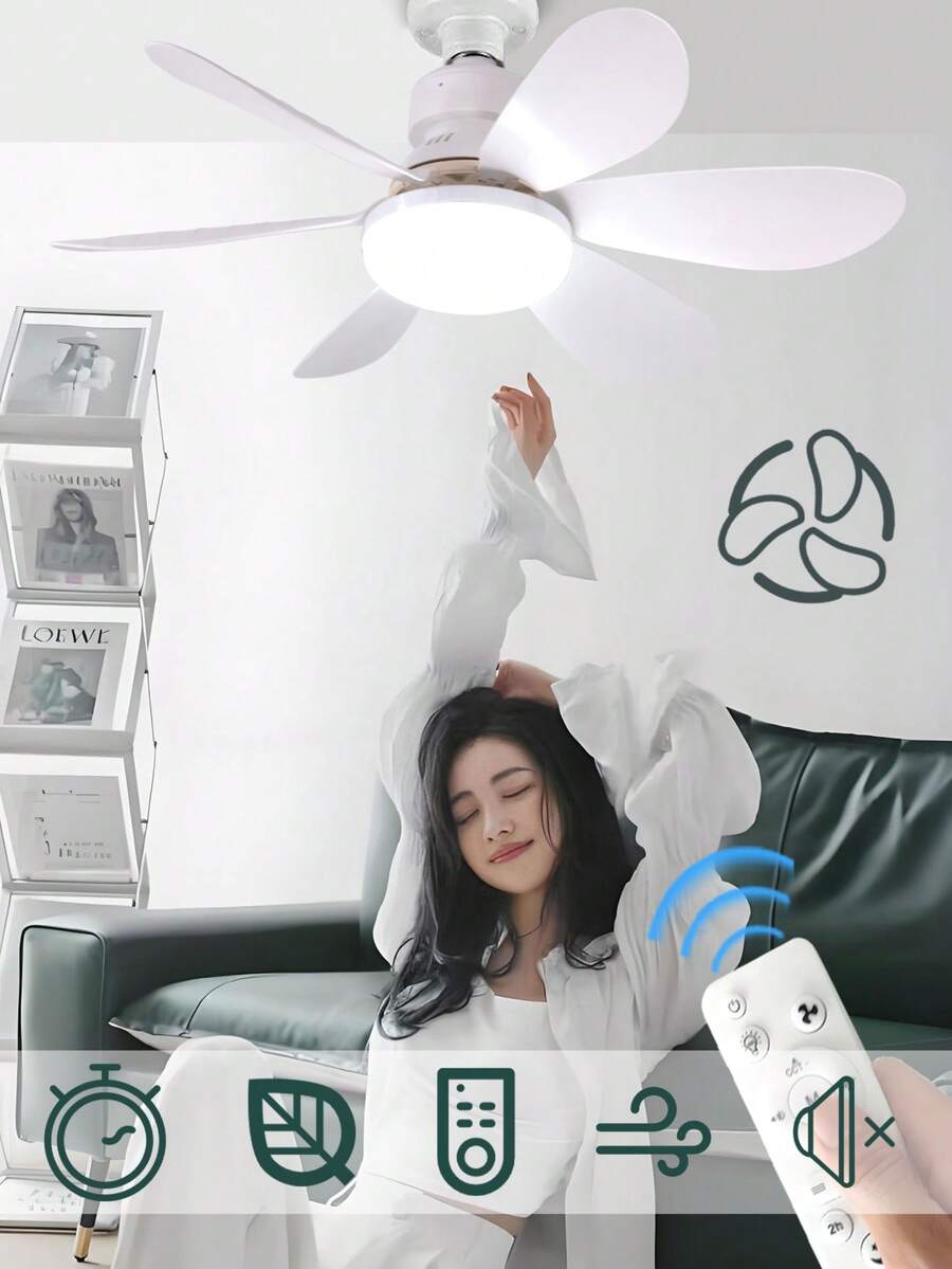 20.5英寸大型吊扇灯,带遥控器,40瓦灯座,E26/E27灯头,3档风速调节,色温3000K-6500K可调,灯座延长杆,适用于浴室、厨房和小房间