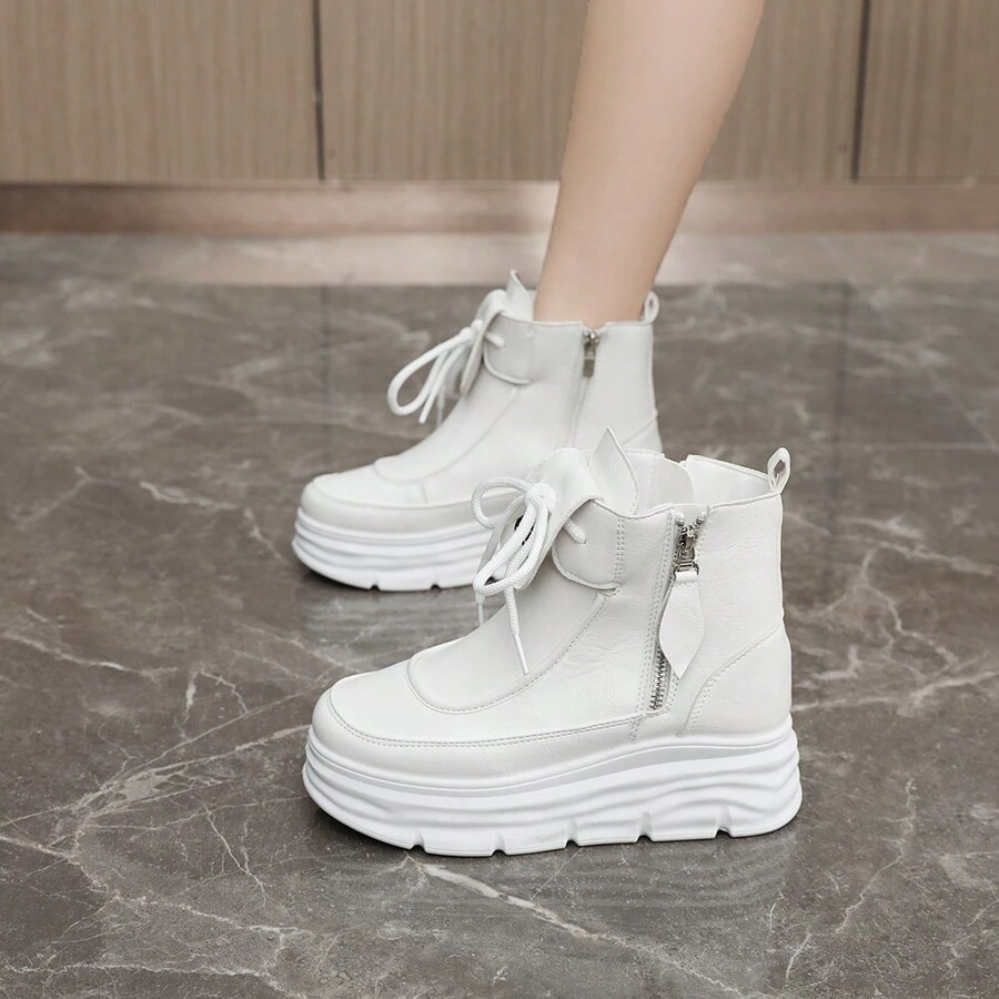 2024 年冬季新款时尚厚底高帮鞋,侧拉链坡跟保暖内衬保暖妈妈鞋