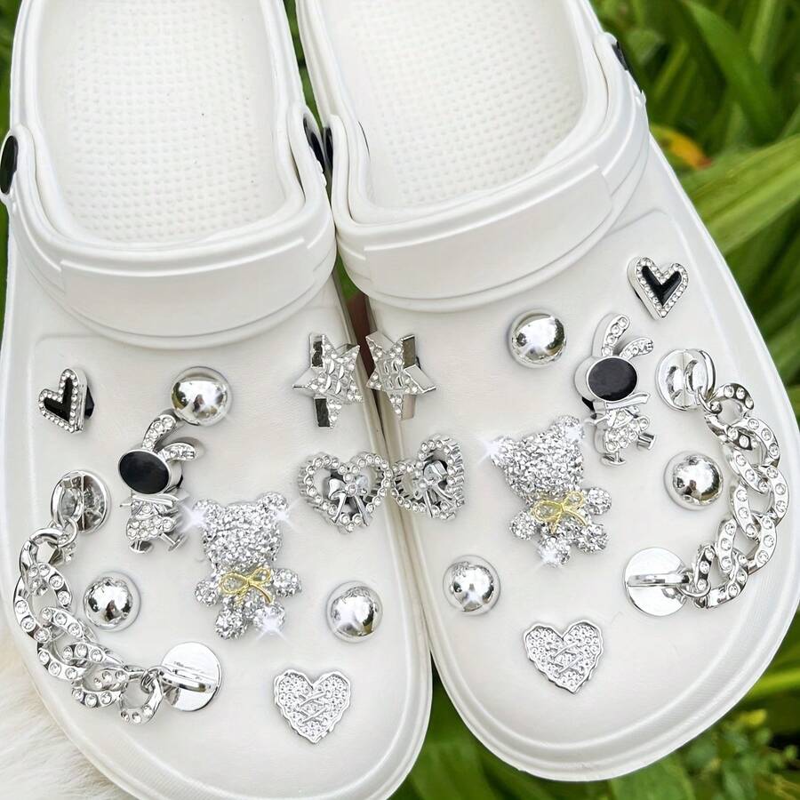 20 件套水钻迷你熊珍珠心形链装饰配件 DIY 可拆卸鞋子、拖鞋、花园鞋