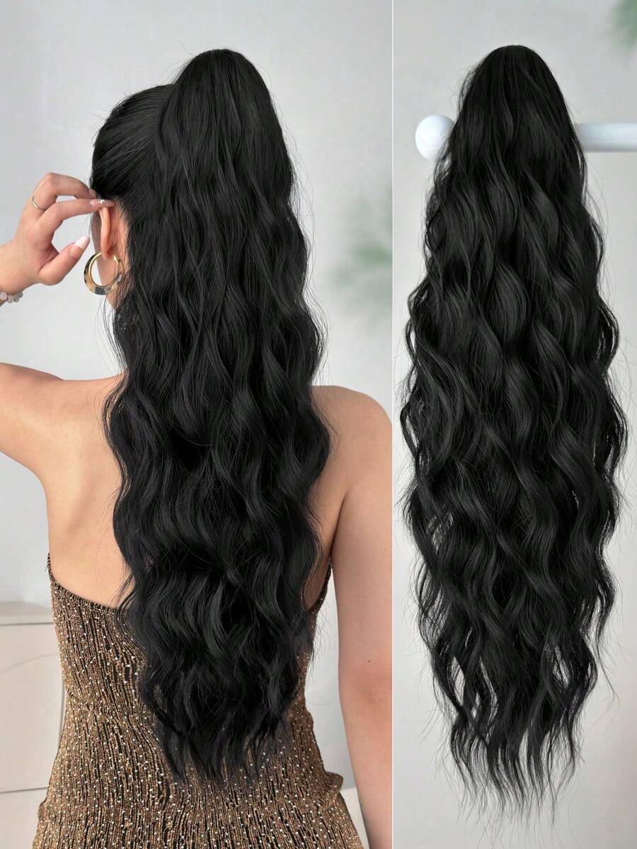 22-24英寸波浪卷发夹式马尾假发,耐热纤维材质,适合日常佩戴和派对场合