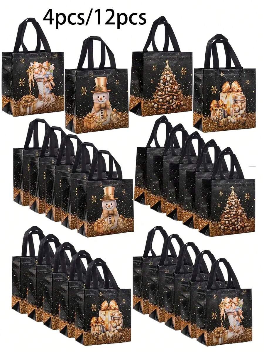 22个圣诞无纺布礼品袋,金色和黑色圣诞无纺布礼品袋(带手柄),可重复使用的黑色和金色圣诞礼品袋,圣诞袜,圣诞雪人,圣诞树,圣诞礼盒图案,精美的圣诞元素,高品质礼品包装袋,无纺布防水礼品袋,非牛皮纸材质!用于糖果、饼干和派对用品。