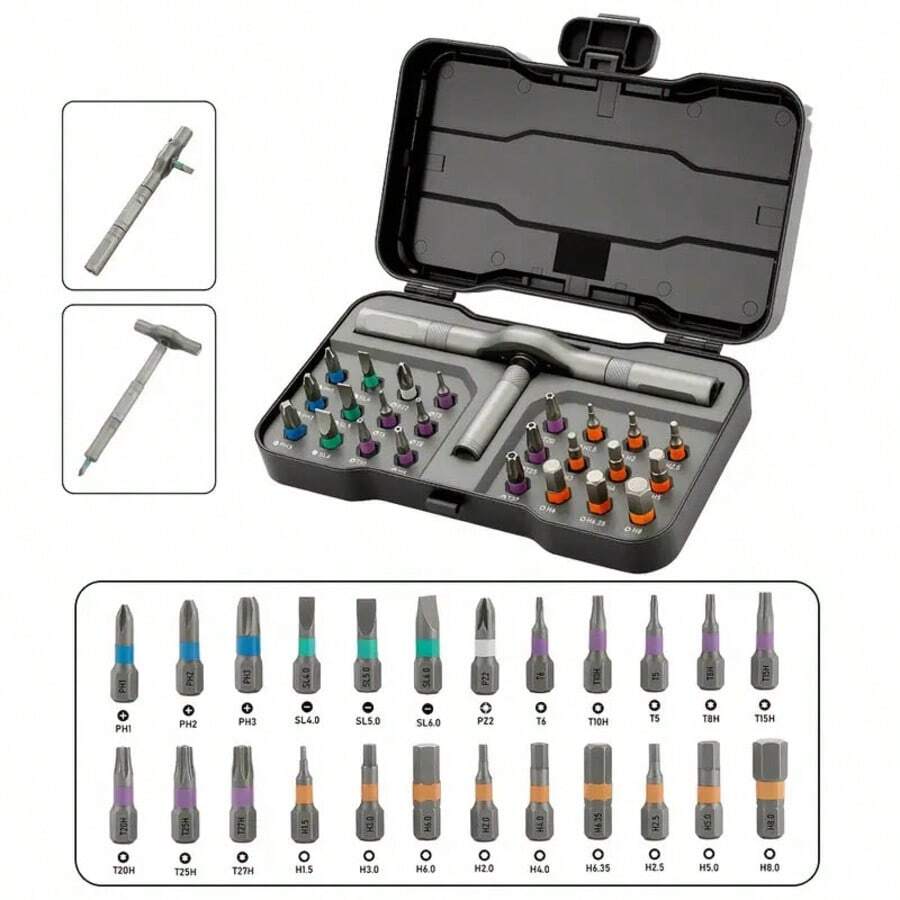 • 24 合 1 精密棘轮螺丝刀套装 - 磁性金属手动工具套件,带多位储物盒,无需电力 - 彩色 - 查看 13
