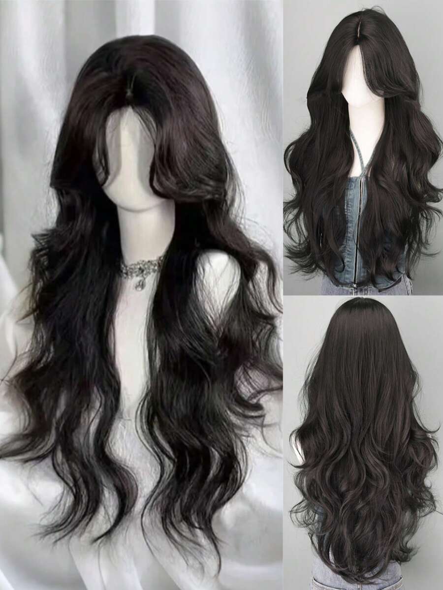 26英寸合成纤维假发,中分长卷金色假发,适合日常佩戴、节日、旅行、派对、角色扮演、万圣节、圣诞节等场合。
