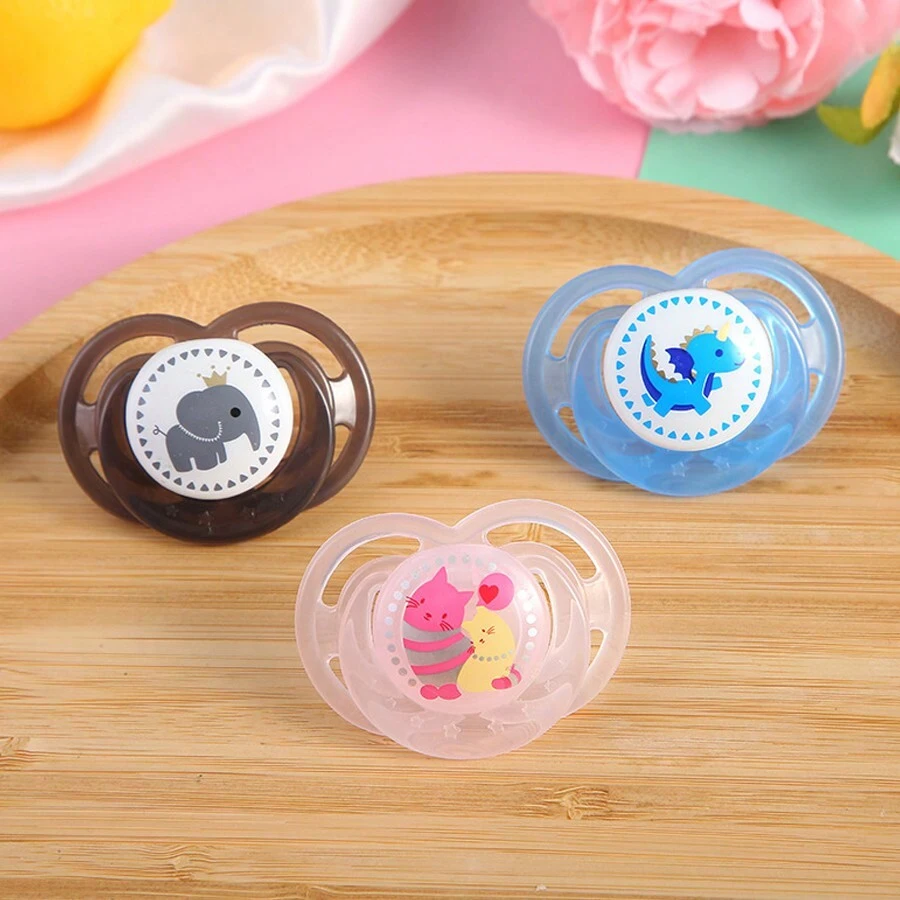 2个/1个卡通动物硅胶奶嘴,可爱印花奶嘴带防尘罩,方便旅行