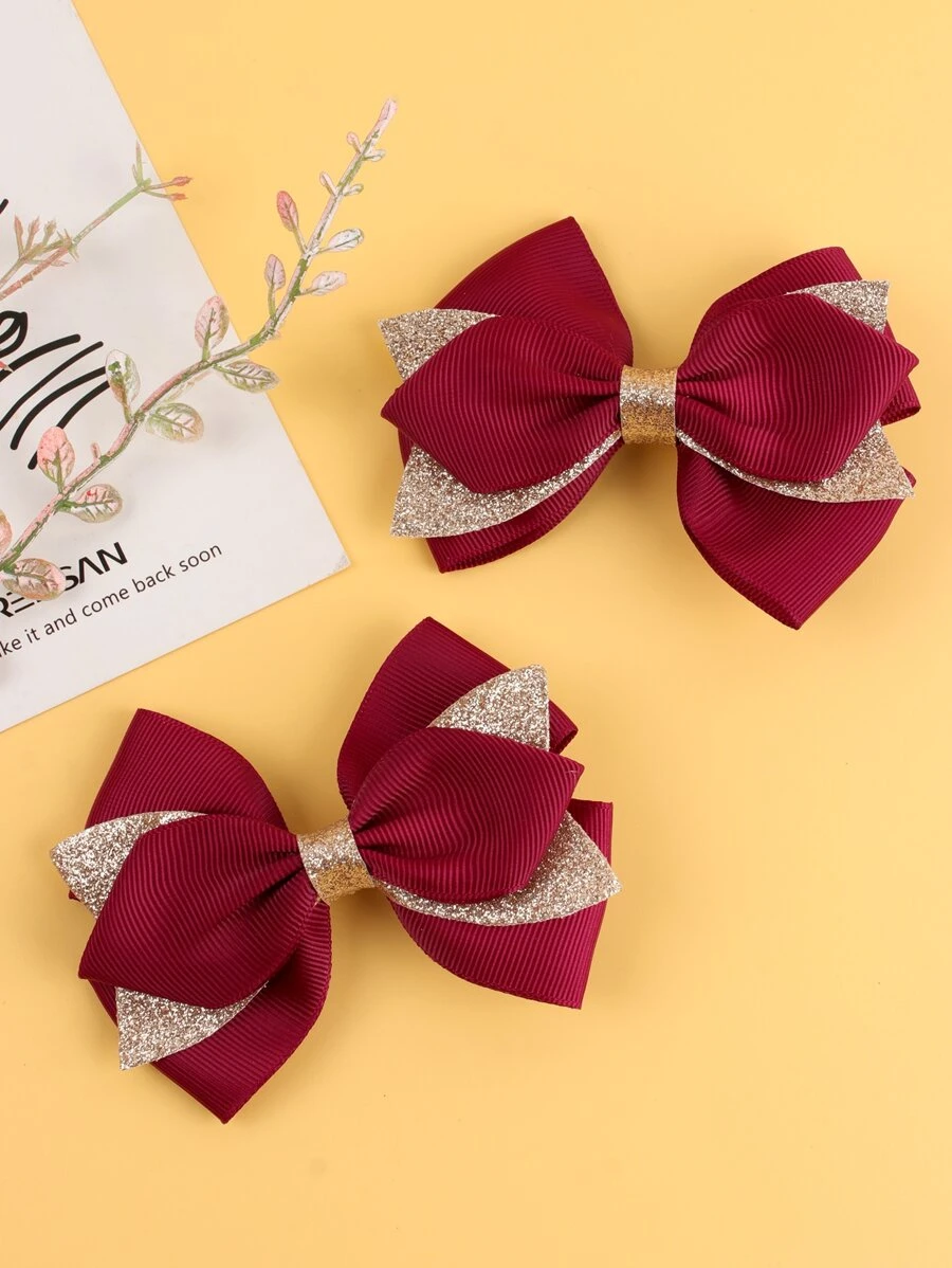 2 件装新年款勃艮第红蝴蝶结儿童发夹