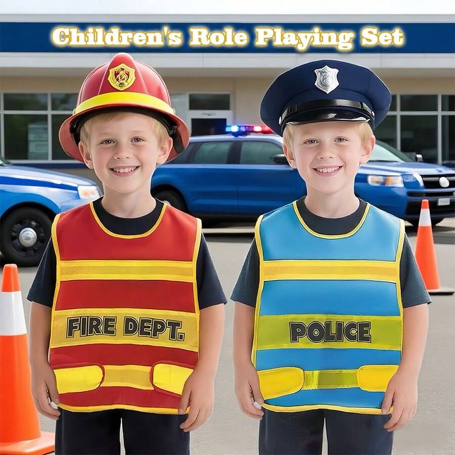 2 件儿童角色扮演服装、消防员制服、制服、角色扮演玩具、适合男孩和女孩、户外玩具、多人玩具、节日派对装扮、万圣节服装、适合作为节日礼物、生日礼物、圣诞节礼物、万圣节礼物、返校礼物