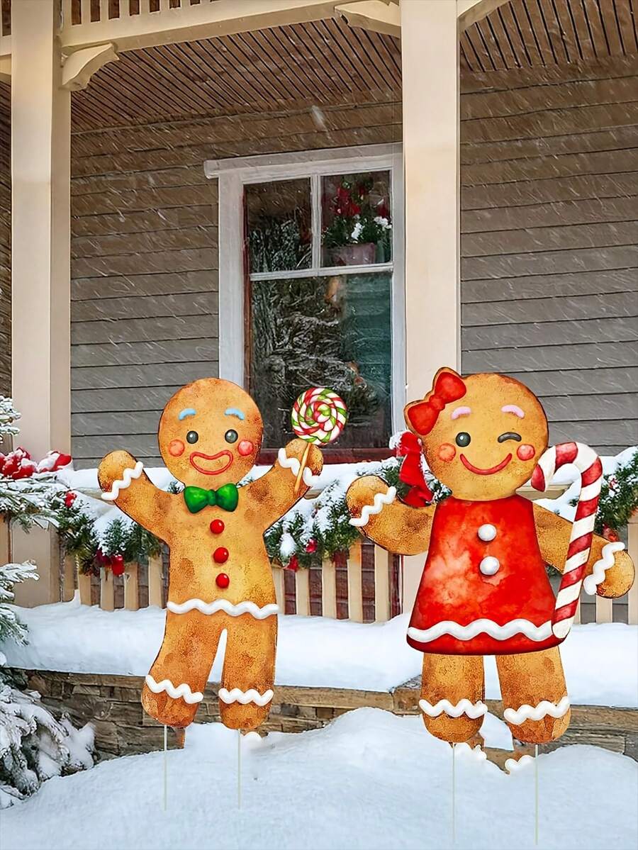 2件套户外圣诞装饰品,姜饼男孩和女孩塑料庭院插牌,姜饼屋圣诞庭院插牌,16英寸简约冬季标志,适用于草坪、花园、前门、农舍门廊等。圣诞节假日小径花园露台派对礼物