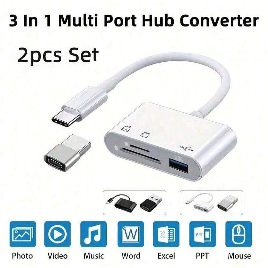 三合一 USB-C 转 Micro SD 卡读卡器适配器,兼容 iPad Pro 及更多 USB-C 设备