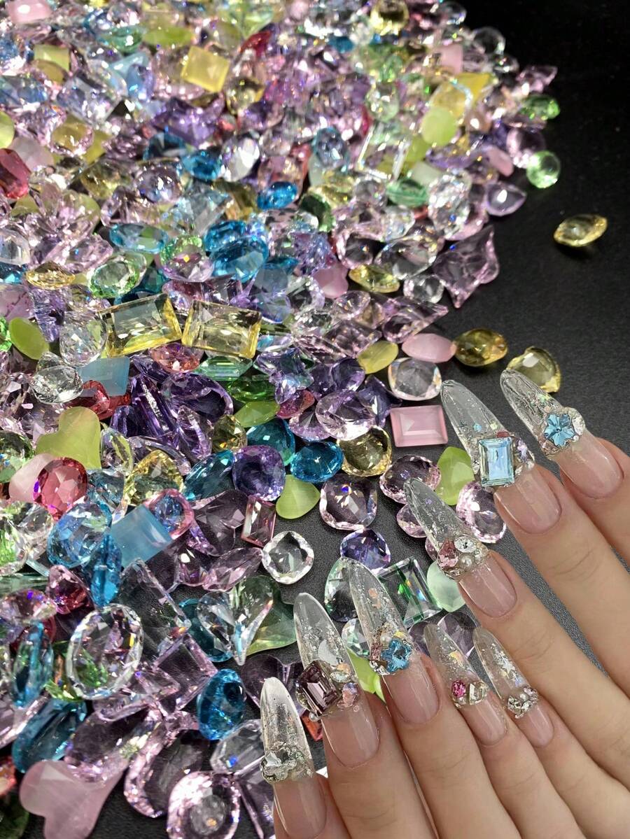 30/50/100颗混合彩色尖底水钻,仙女珠宝盒,奢华美甲水钻装饰,闪亮水晶不对称美甲钉,适合春夏美甲