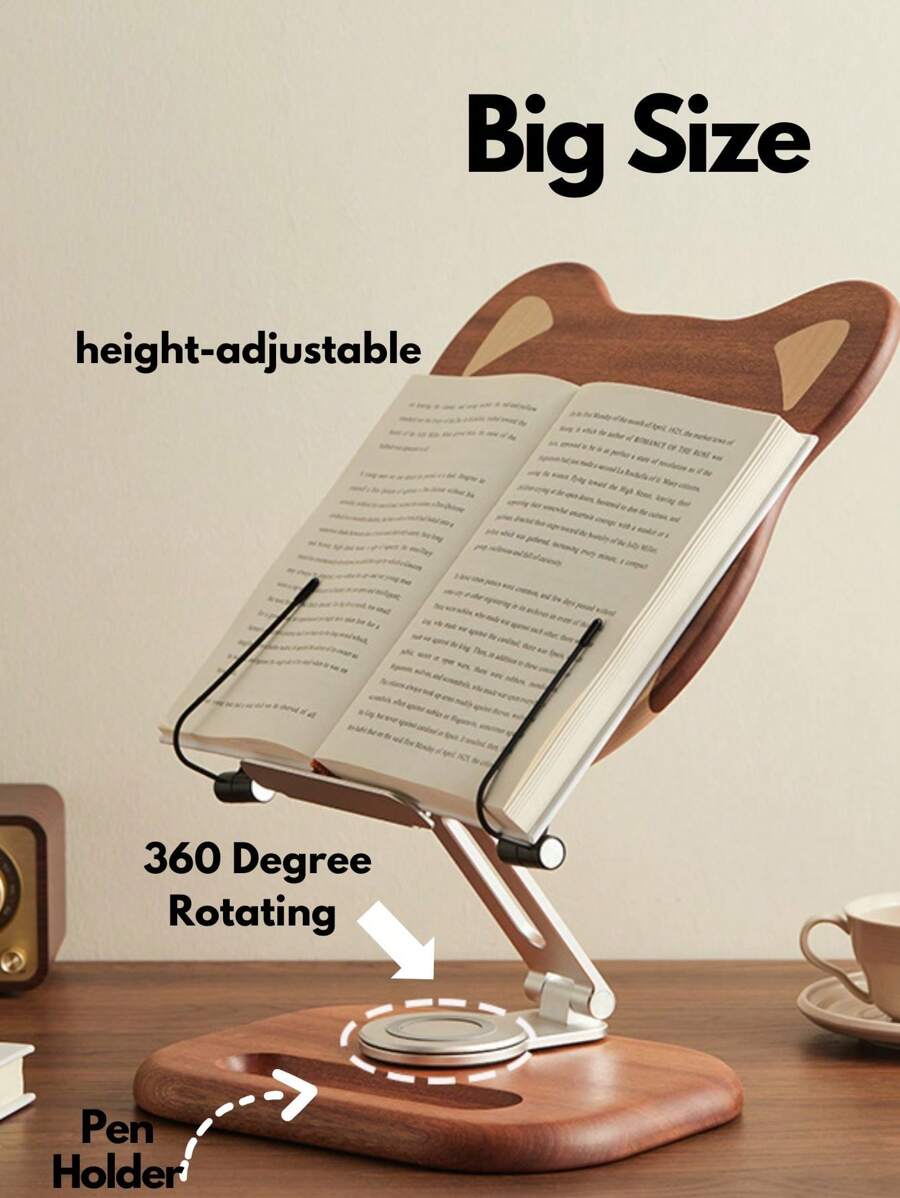 360° 旋转书架,可调节木制书架,阅读配件,可折叠食谱书架,免提阅读、教科书、笔记本电脑、节日礼物、圣诞礼物