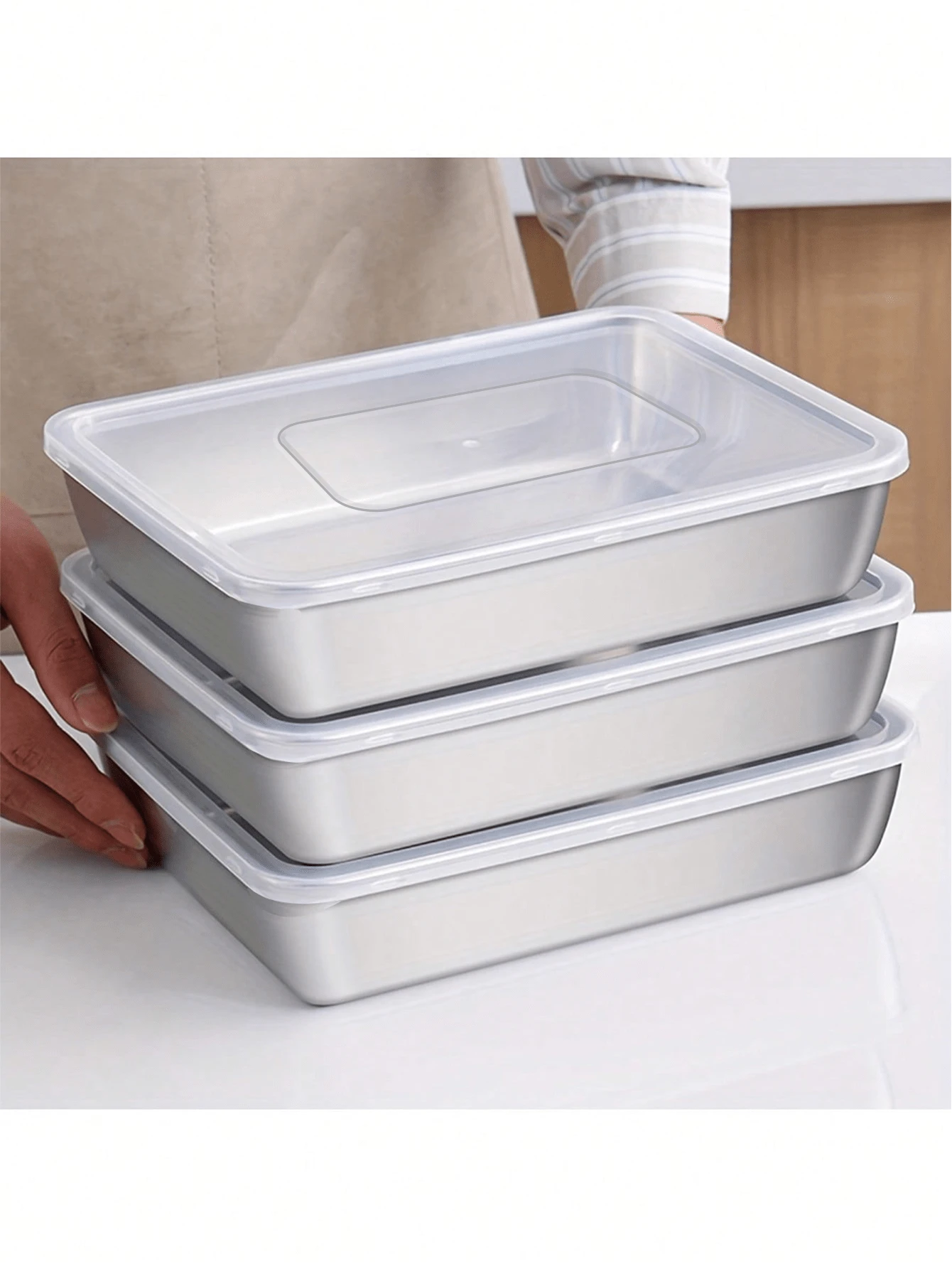 3 件 10.2 英寸带盖不锈钢烤盘,食物储存套装 - 方形,手工盖上,手洗 - 适合准备饭菜和户外野餐