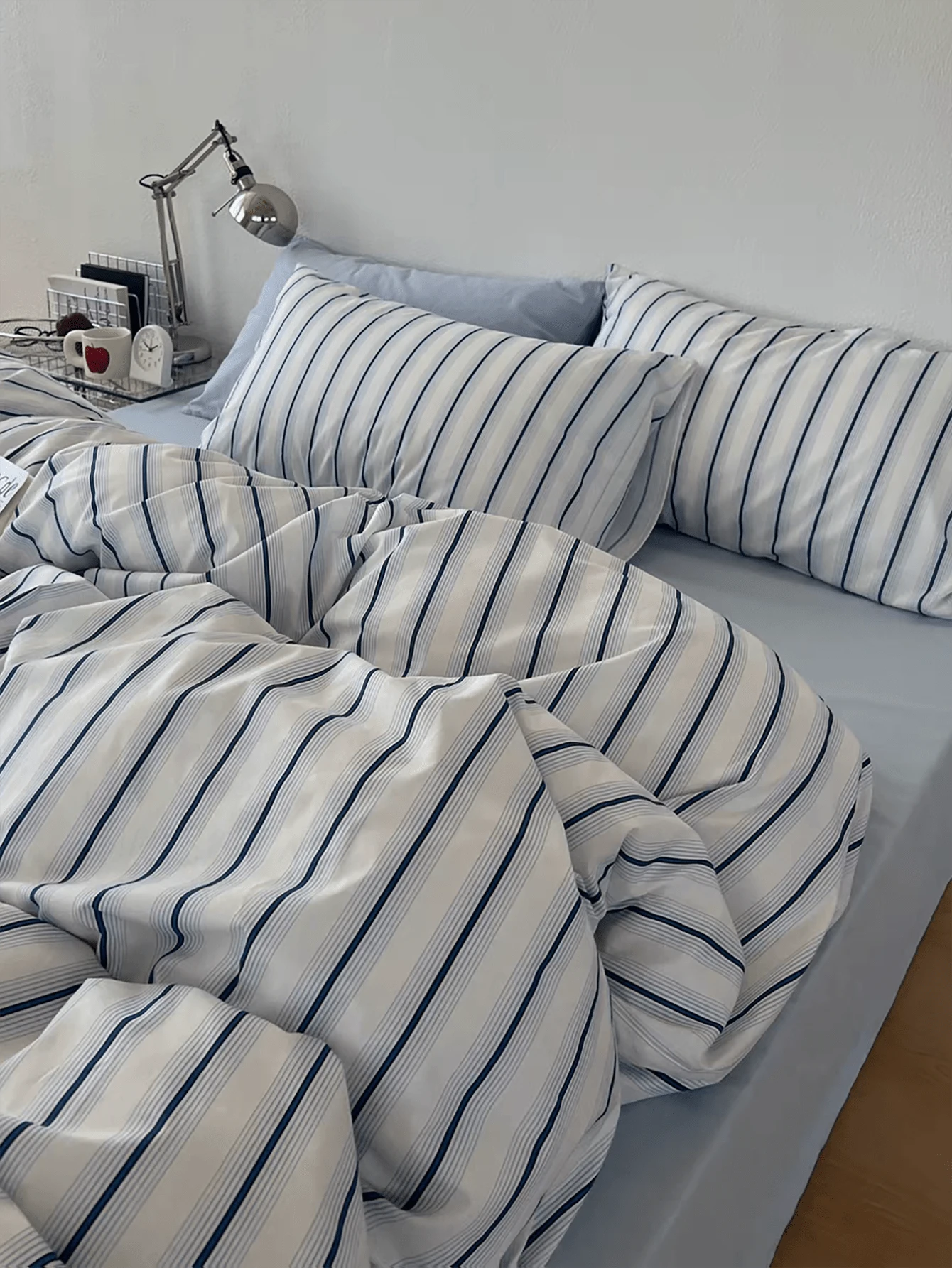 3 件套 100% 纯棉北欧简约条纹棉床上用品套装,2 个枕套 + 1 个羽绒被套
