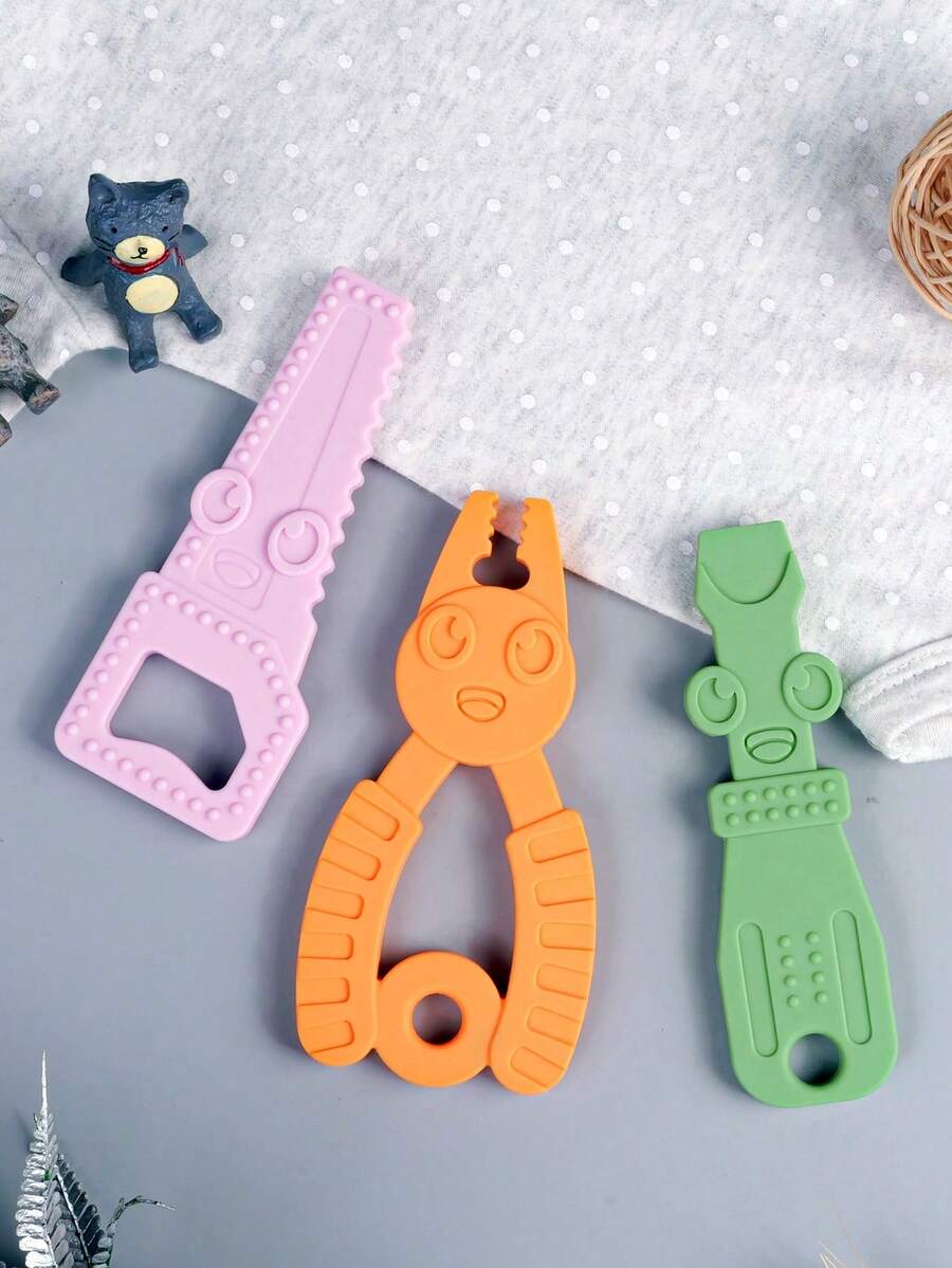 3入組具備卡通工具造型的嬰兒矽膠咬咬餅,早期教育與學習的齒齡玩具