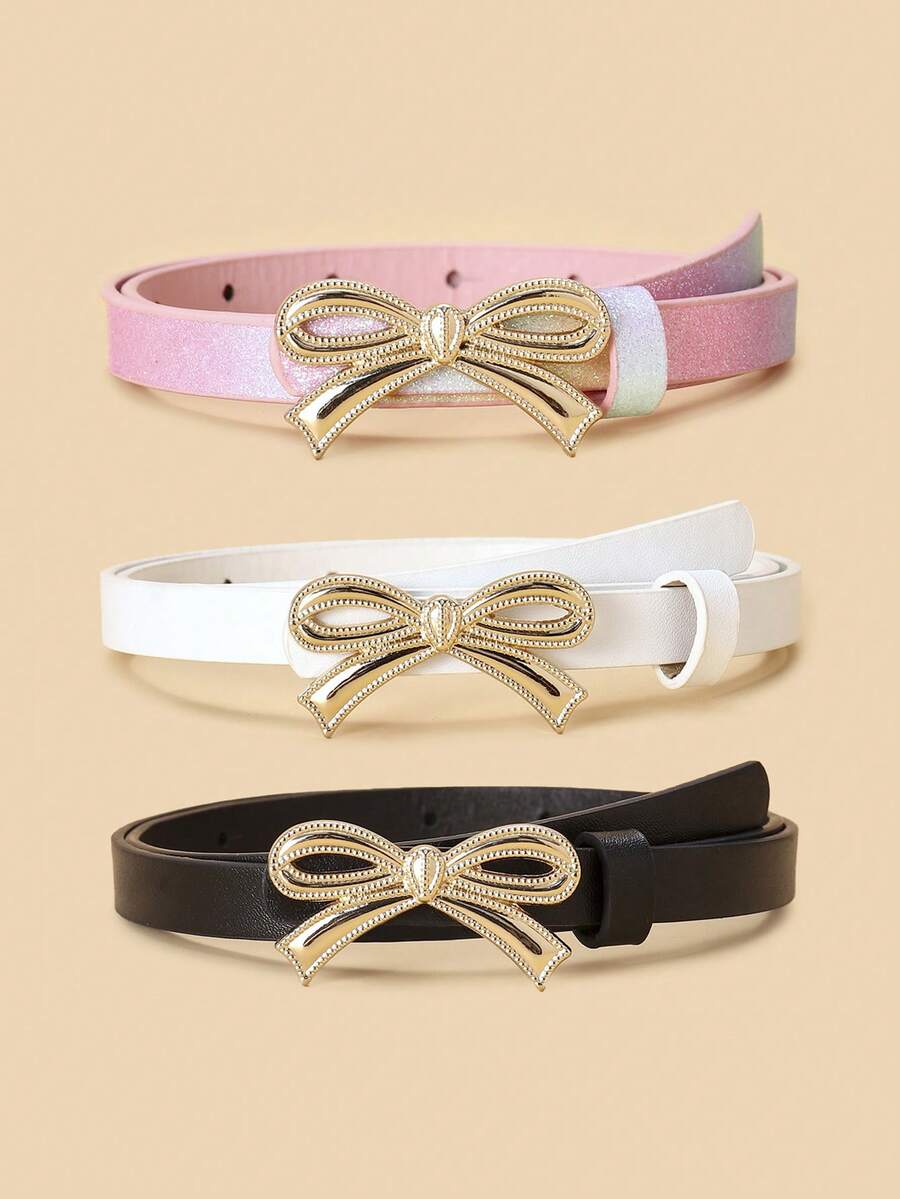 3条装儿童蝴蝶结细腰带,高品质PU腰带,适用于牛仔裤、连衣裙
