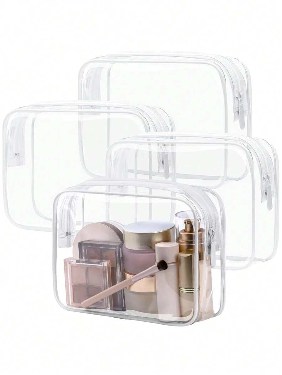 3件套男女通用防水透明化妆包,夏季度假旅行必备 - 轻便,多种颜色可选(粉色、黑色、白色、玫红色),多功能旅行拉链收纳包,可存放女士洗漱用品和配件