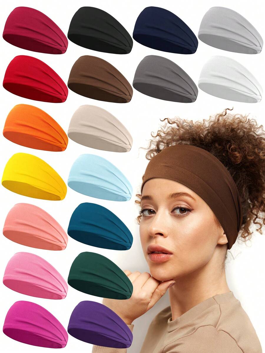 3条/6条装女士弹力宽运动头带,纯色,休闲户外跑步时尚发饰,头巾式头带,秋冬季发带蝴蝶结,适合度假装扮,女士优雅围巾,女士头巾,柔软头巾