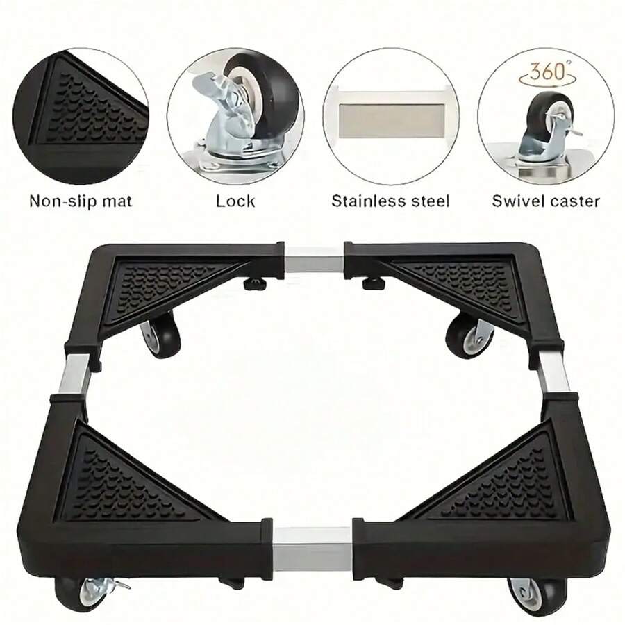 4 脚轮不锈钢电器推车 - 可调节移动滚轮底座,适用于冰箱、洗衣机和烘干机 - 节省空间的厨房储物架、冰箱、移动底座