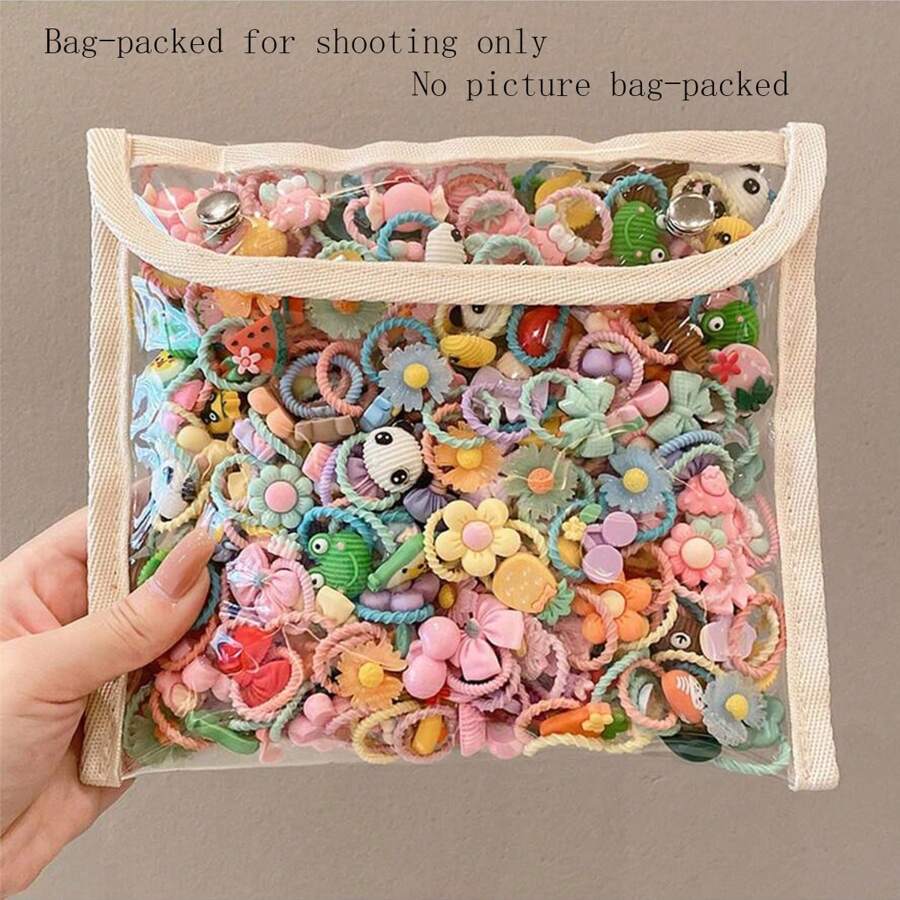 40/50 件女孩卡通水果动物花朵蝴蝶结皇冠设计发带、发圈、弹力发带、发饰、不伤发饰礼品套装、女士头饰、女士发饰马尾辫夹