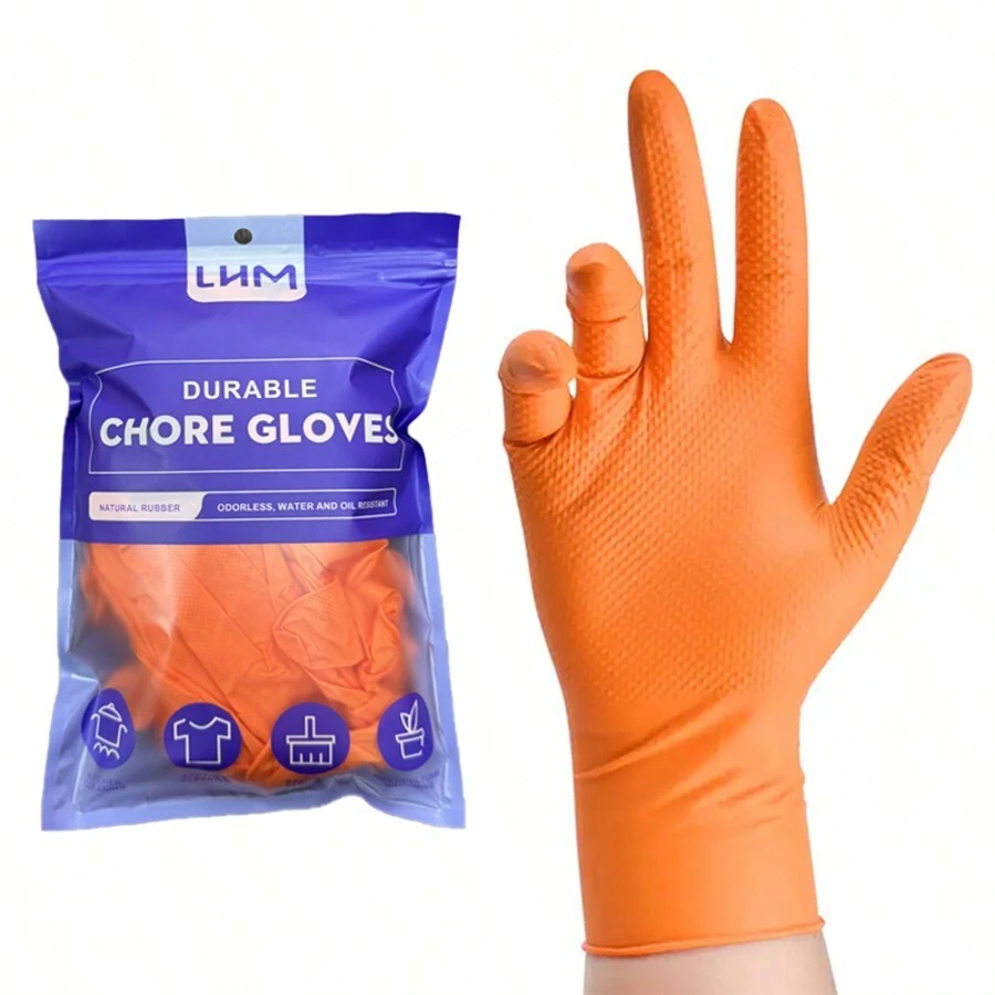 40/60 只一次性丁腈双面菱形纹理手套,橙色,强力抓握,防滑橡胶,增加摩擦力,9 英寸,不含乳胶,无铅,舒适有弹性