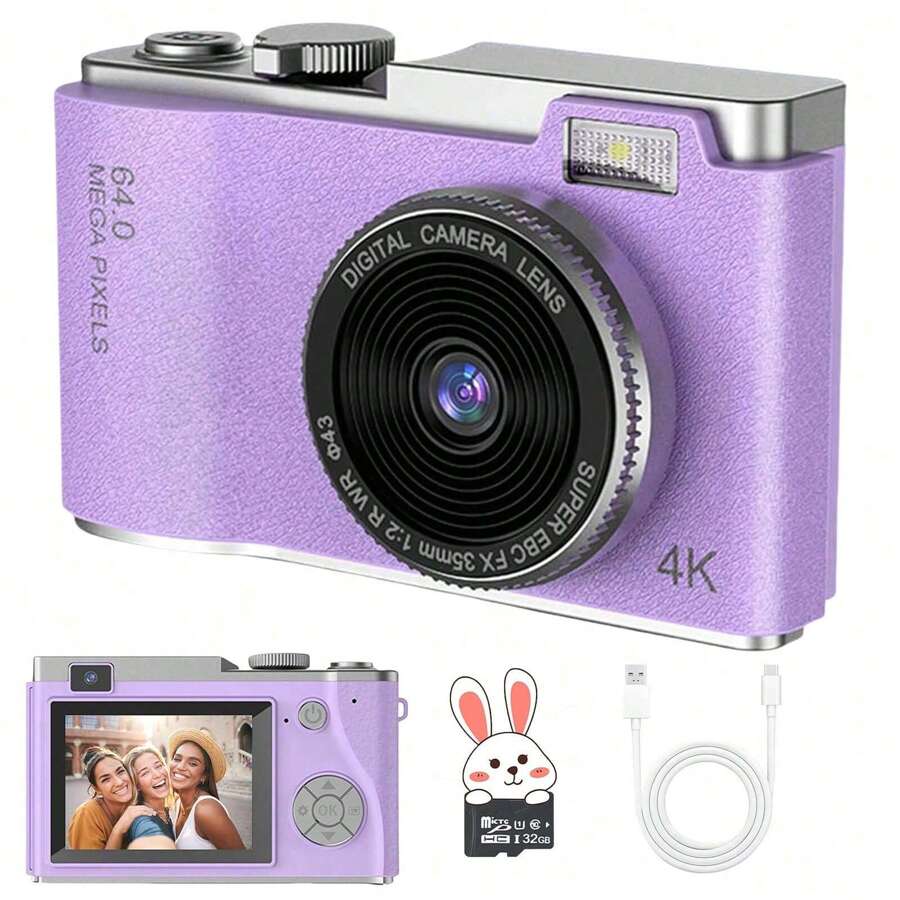 4800万像素自动对焦数码相机,支持4K视频拍摄、16倍数码变焦,小巧便携,适合青少年、成人和初学者使用,支持视频录制/拍照/自拍 - 也适合儿童和初学者使用