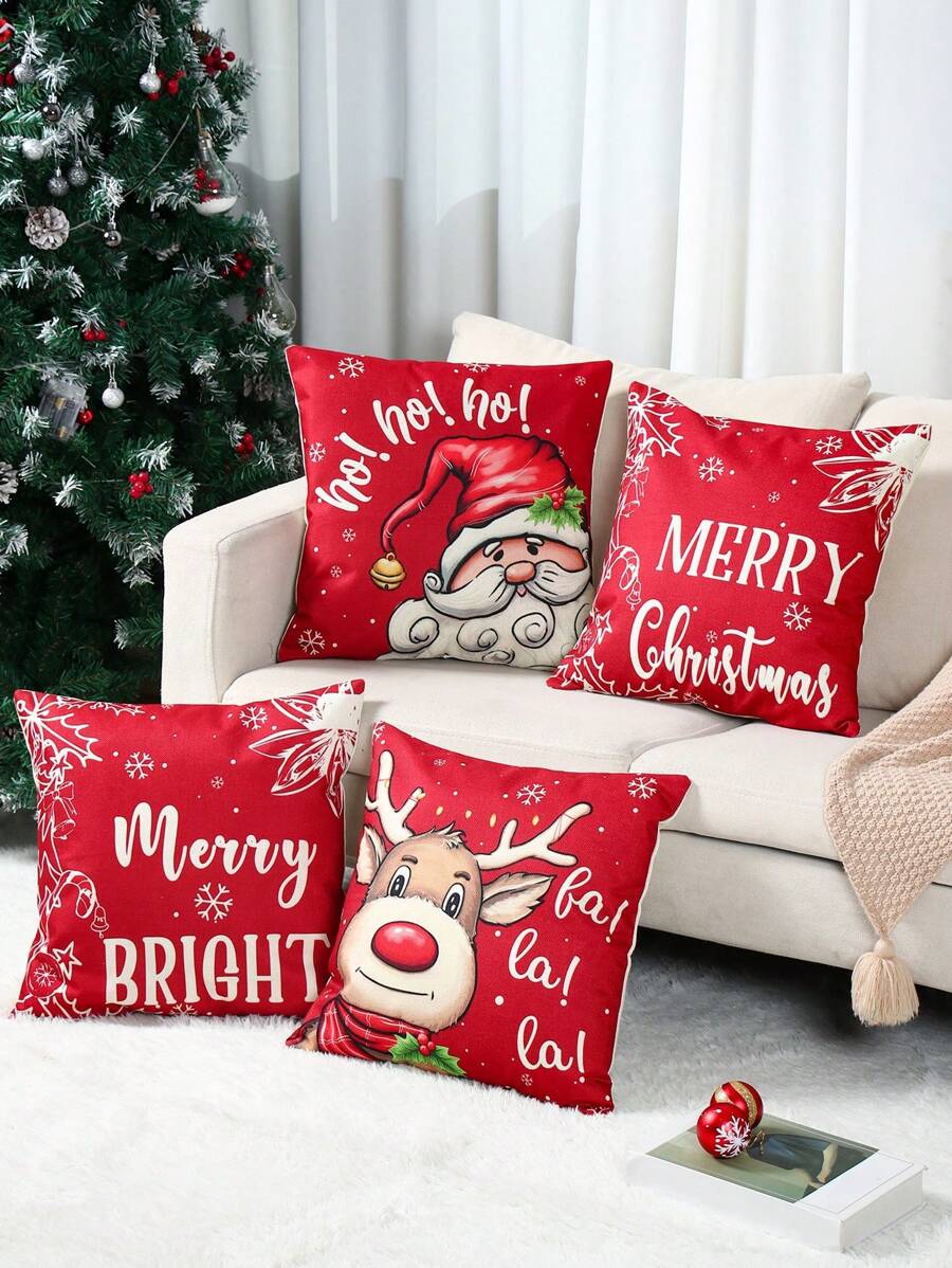 4 件圣诞装饰枕套亚麻方形靠垫套 45*45 厘米,圣诞老人麋鹿软枕套适用于圣诞派对家庭房间沙发椅装饰圣诞装饰品,圣诞靠垫套,圣诞沙发装饰圣诞枕套,圣诞房间装饰,圣诞礼物,2026 新年装饰,不含枕芯圣诞装饰圣诞装饰圣诞装饰