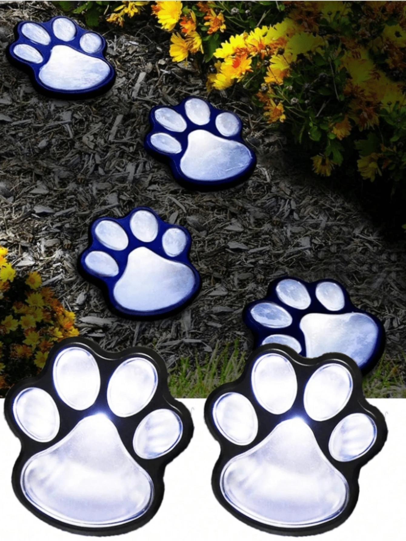 4个太阳能狗爪LED灯,爪印造型太阳能户外灯,带智能传感器,适用于猫狗、宠物花园小径的景观照明,暖白/白光LED,可爱爪印设计,适合宠物爱好者