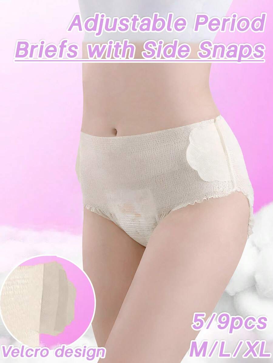 5/9片月经裤 一次性内裤带粘边 不脱裤即可换洗 开合腰贴 无痕 方便快捷 牢固粘贴 柔软舒适 健康透气不闷热 强吸力 防侧漏 干爽不粘连 日用裤 舒适360°弹力腰围 不勒腰 适合所有体型