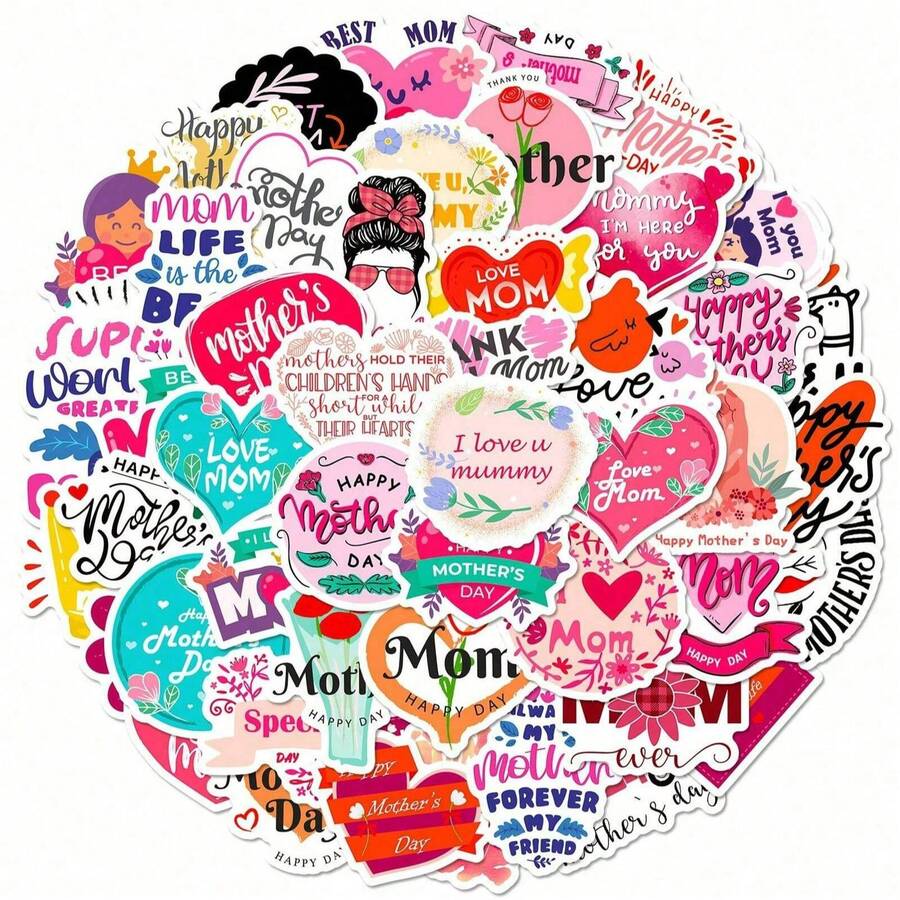 50 张粉色贴纸,美观防水励志贴纸,适用于节日装饰礼品包装水瓶笔记本电脑手机剪贴簿,爱妈妈,乙烯基卡通贴纸,适合青少年成人、万圣节、圣诞节礼物