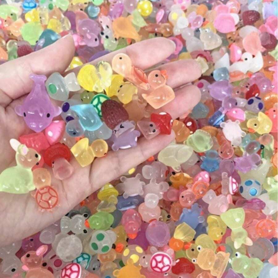 50个迷你夜光动物摆件,惊喜独立包装,ABS材质发光动物和蘑菇雕像,适用于水族箱、玩具屋、仙女花园装饰、家居装饰、神秘礼品袋、派对小礼物