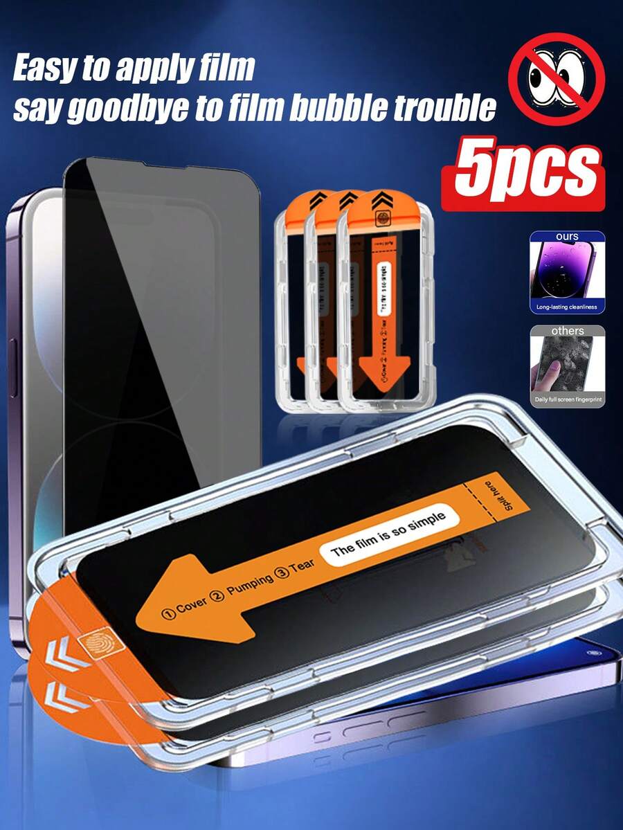 5 件适用于 Apple 型号、自动对齐屏幕保护膜、钢化玻璃、防窥视、防尘、无气泡、易于粘贴、防刮、防指纹、防震,适用于 Apple X/XR/11/12/13/14/15/16/16 Plus/16 Pro/16 Pro Max/16e/17/17 Air/17 Pro/17 Pro Max 全系列