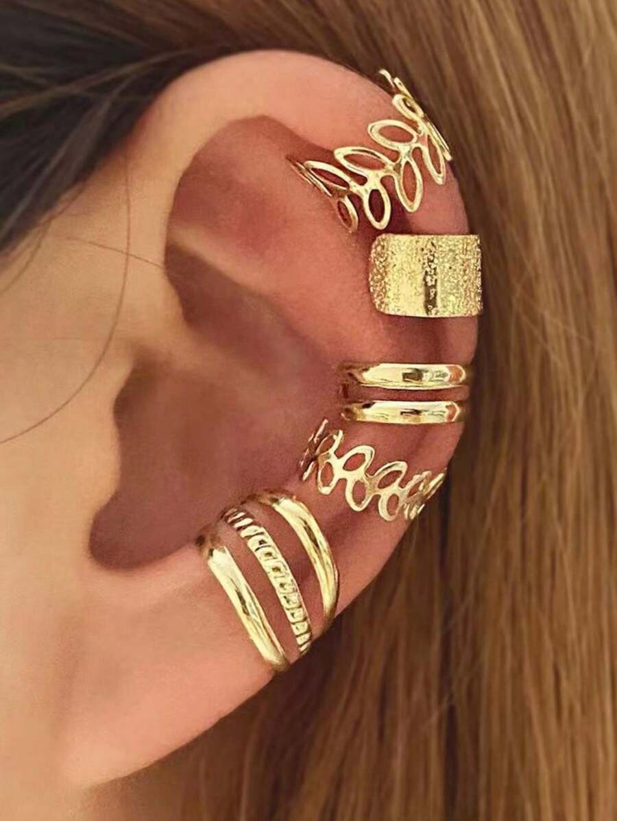 5 件时尚欧美风格简约镂空 C 形耳夹耳环,无穿孔设计