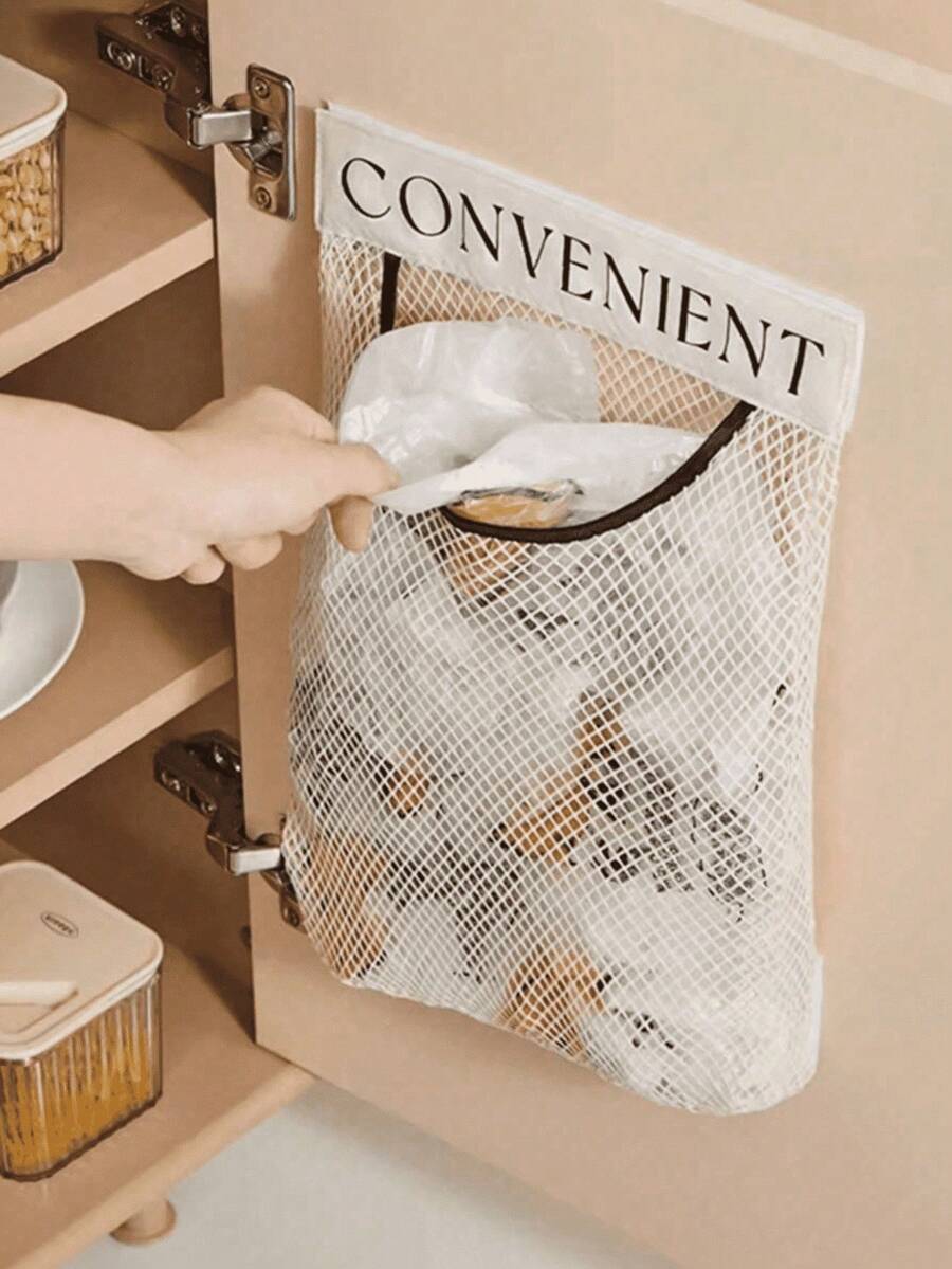 5个装厨房垃圾袋支架,壁挂式大容量储物袋,带魔术贴的塑料网袋