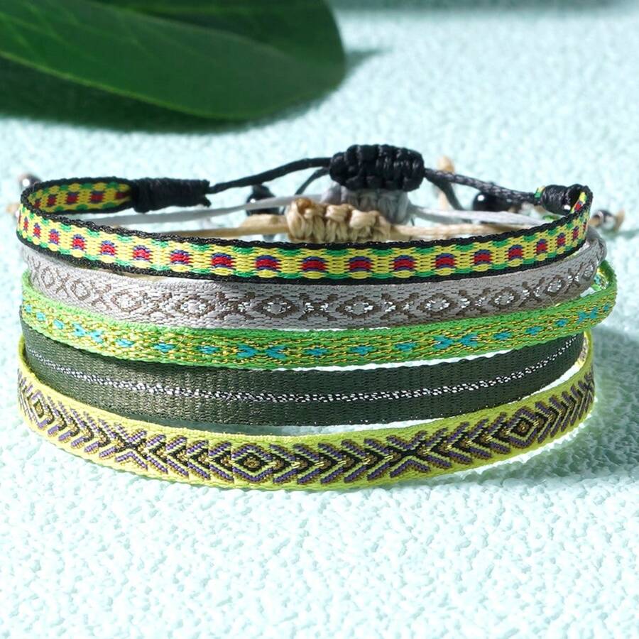 5入組波西米亞風格手編馬卡龍繩女士迷你多層手鍊,2024年嬉皮潮流少年版