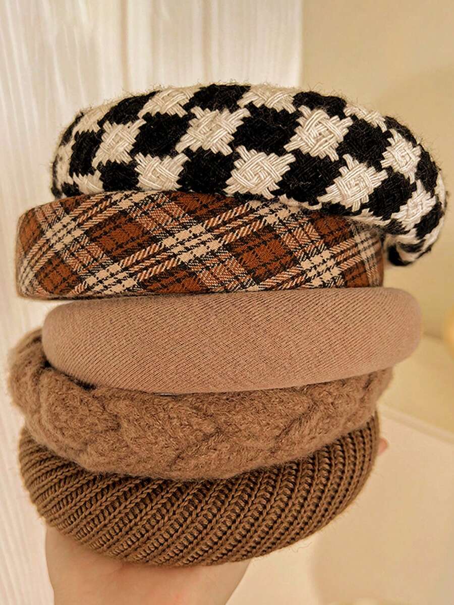 5入組女士格紋頭帶,秋冬季針織保暖包頭,時尚優雅的頭飾,適用於日常穿著、洗臉、化妝和搭配衣服