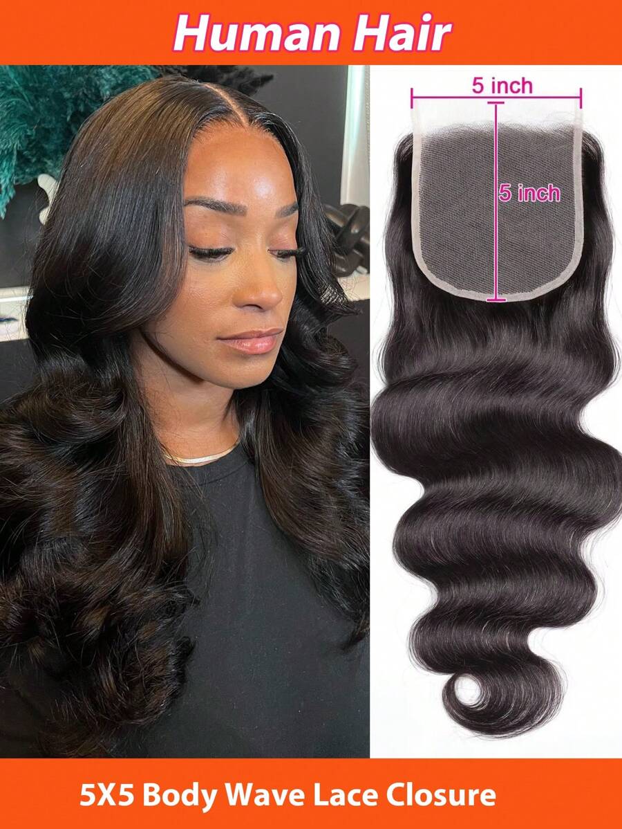 5x5 蕾丝封口波浪透明蕾丝封口巴西处女真人发封口自由部分已预拔
